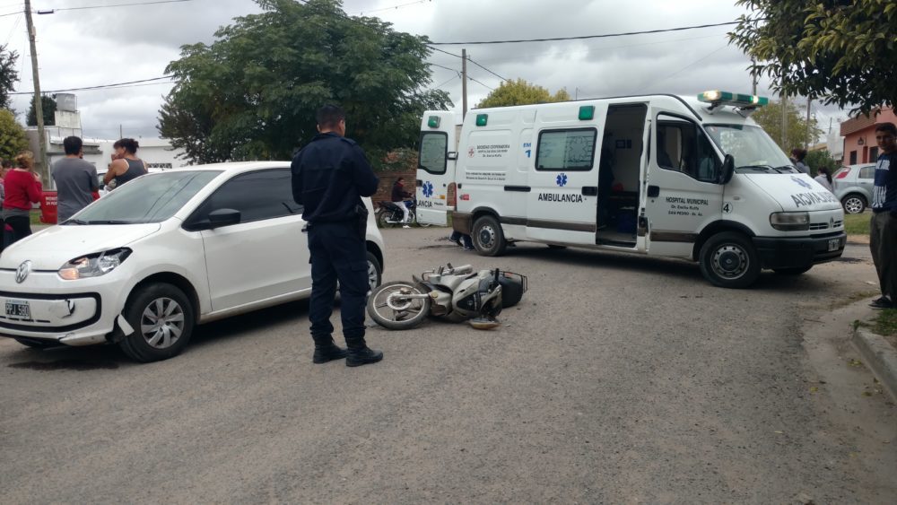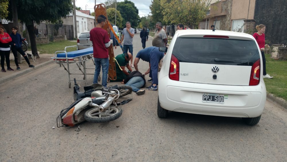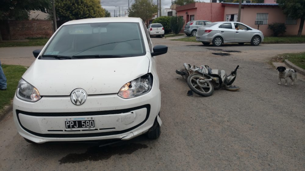 En el medio día de hoy, pasadas las 13:00 hs ocurrió un accidente de tránsito en la esquina de Libertad y Padre Santana entre un automóvil Wolksvagen UP blanco conducido por una mujer de alrededor de 30 año y una moto Gilera Smash 110 cc dirigido también por una mujer de 30 años de edad.