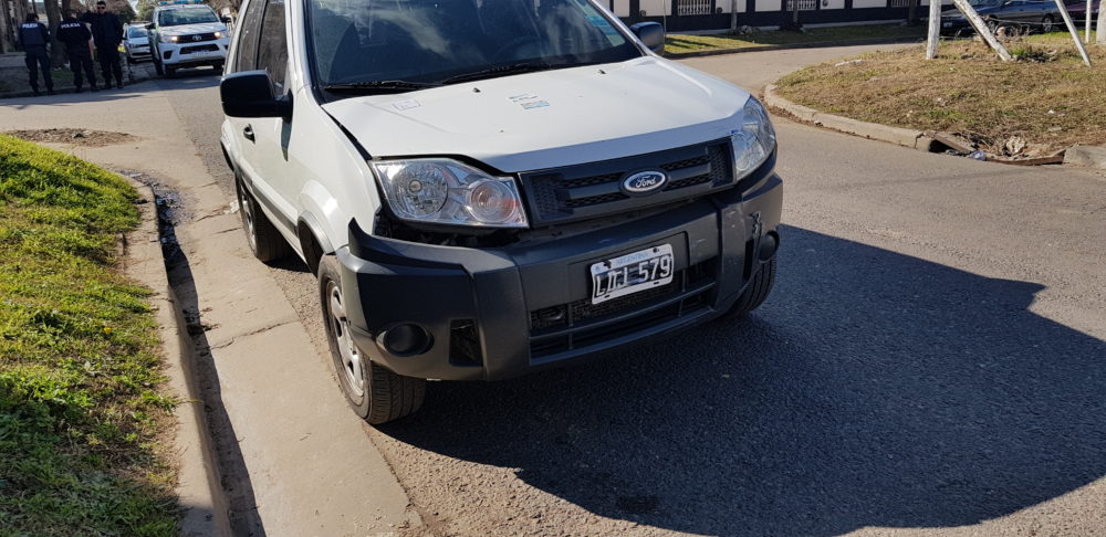 Según los testigos el móvil policial que circulaba por Libertad con dirección hacia el centro de la ciudad ya se encontraba cruzando la boca calle y es impactado en la puerta trasera por la camioneta Ecosport en la que circulaba un hombre mayor de edad.