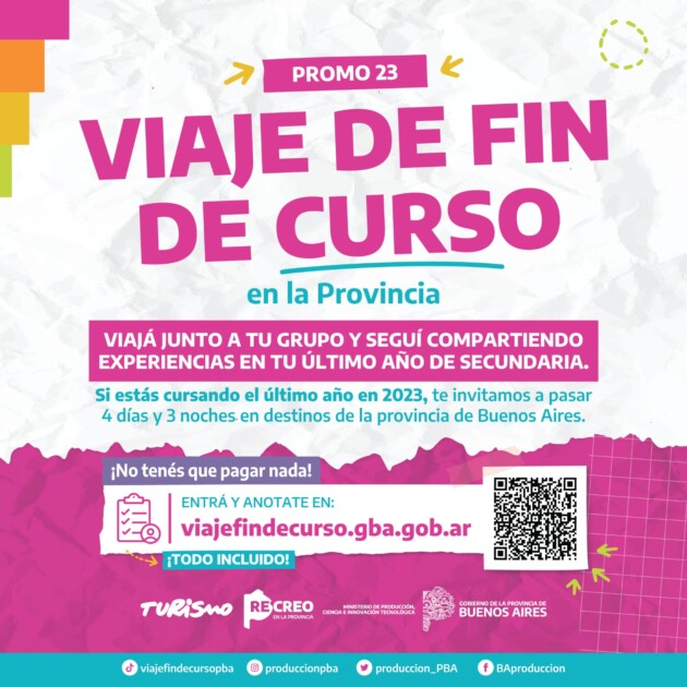 Para mayor información, evacuar dudas y avanzar con la inscripción pueden consultar el sitio web: https://viajefindecurso.gba.gob.ar/