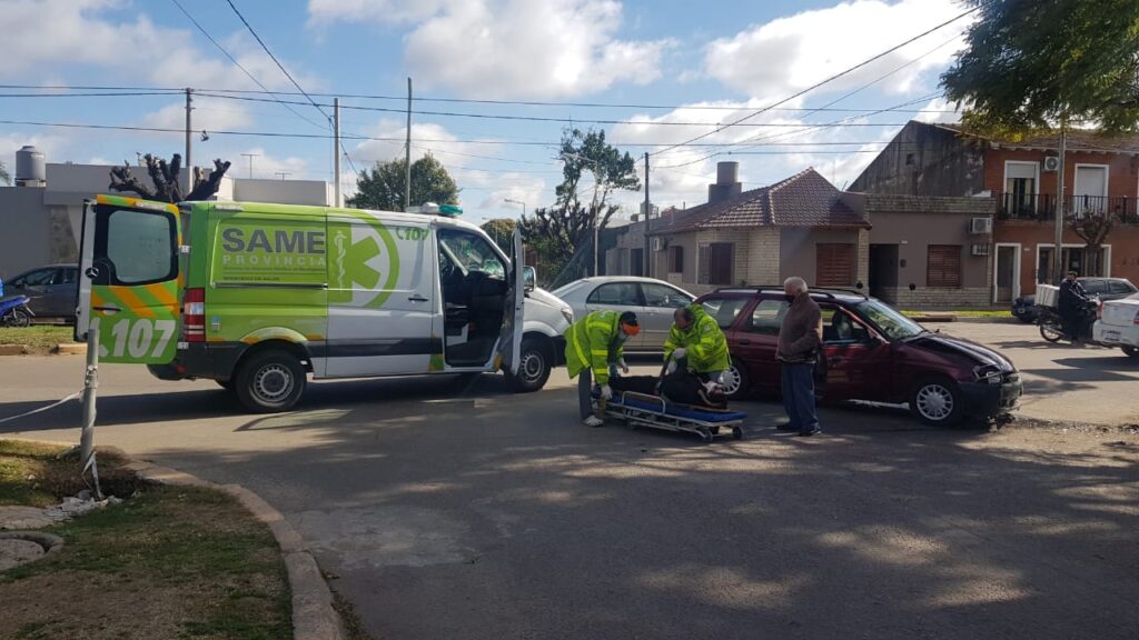 El automóvil C3 por la violencia del impacto termino sobre la vereda, y como prevención la mujer acompañante del segundo automóvil fue trasladada por la ambulancia del SAME hacia el nosocomio local.
