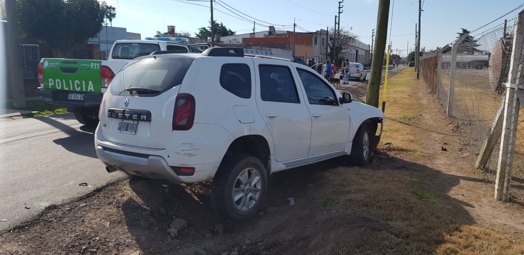 Esta tarde de miércoles alrededor de las 14:15 hs en la esquina de Uruguay e Italia se produjo una fuerte colisión entre una camioneta Renault Duster color blanco en el que circulaba un hombre de alrededor de 40 años quien fue impactado por un automóvil Ford Fiesta color blanco conducido por una mujer de aproximadamente 40 años también.