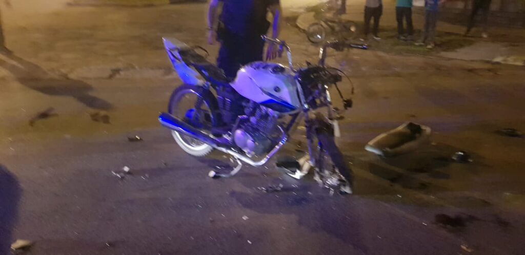 El hecho ocurrió este viernes pasadas las 19:30 hs en la esquina de ruta 1001 y Salta donde un joven de 17 años que circulaba en una motocicleta Motomel 150 cc color blanca impacto de lleno contra un automóvil Volkswagen Gacel color bordo en el que circulaba otro joven de 25 años.