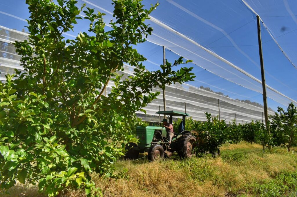 Federico Morresi, uno de los responsables de la empresa acompañó un recorrido por las 20 hectáreas de limones que producen bajo una malla antihelada y antigranizo, brindándoles la posibilidad de proteger la fruta más allá de las contingencias climáticas.