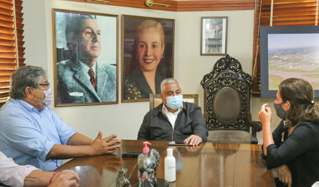 El Intendente Cecilio Salazar recibió ayer en su despacho al dirigente político Fernando «Chino» Navaro, recientemente designado por el presidente Alberto Fernández como Secretario de Relaciones Políticas y Parlamentarias.