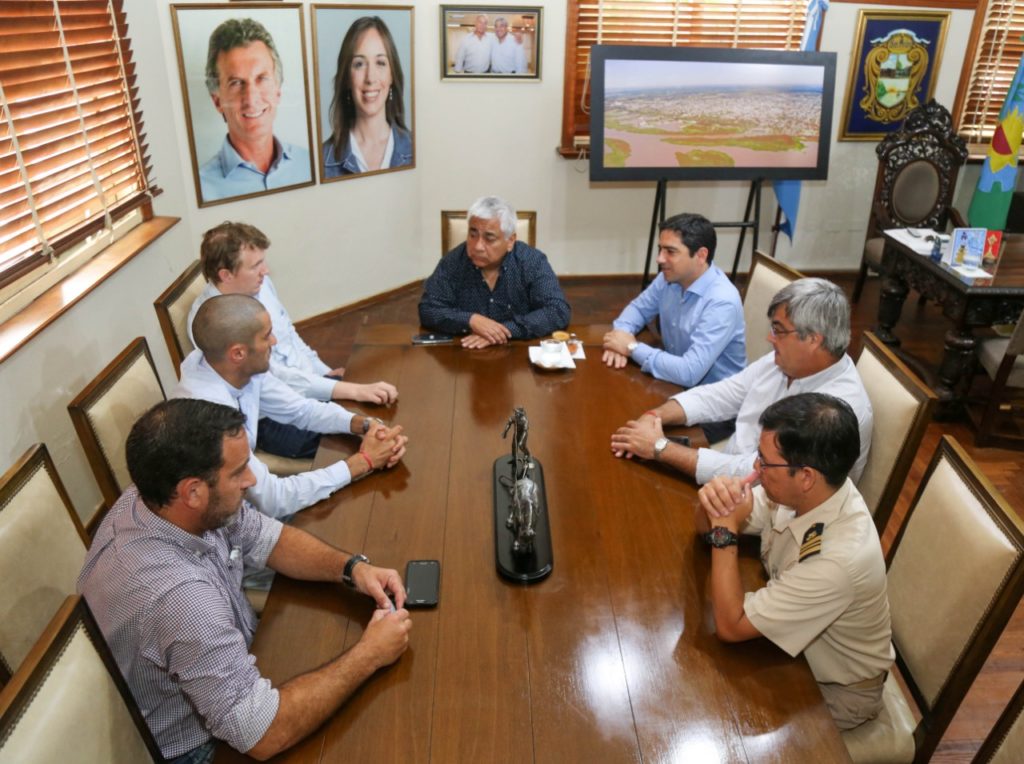 Fue recibido por el Intendente Municipal Cecilio Salazar, el presidente del Consorcio de Gestión Eliseo Almada, el Secretario de Gobierno Silvio Corti (representante de la Municipalidad en el Consorcio), el jefe de la Aduana Walter Kissling, el jefe de la Prefectura San Pedro Alejandro Hereñù y los concejales de Cambiemos Damián Lafalce y Gerardo Pelletier.