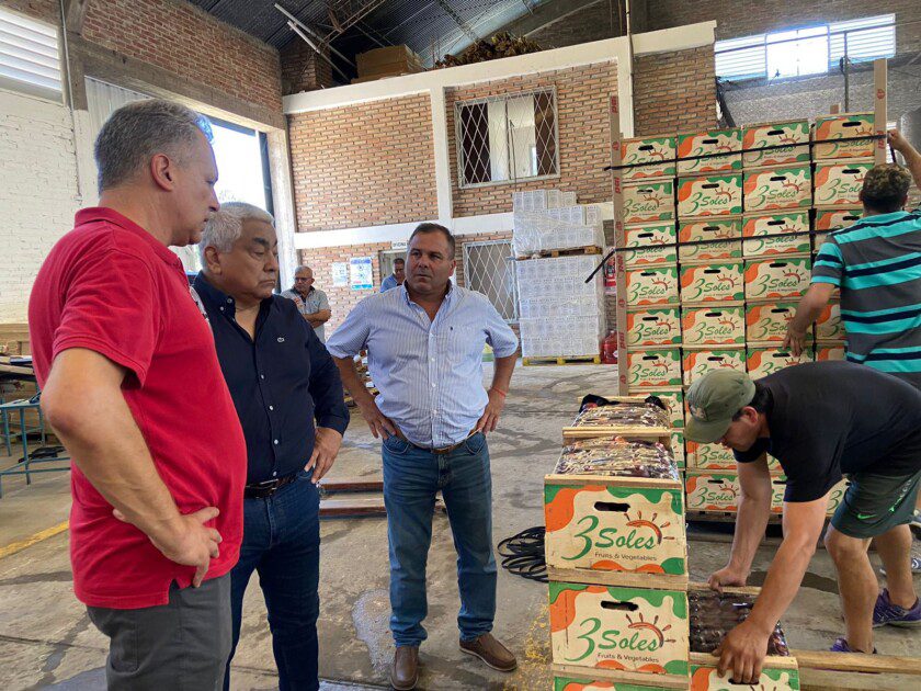 El Intendente Cecilio Salazar encabezó esta mañana una visita a la planta de Agrocomercial Tres Soles S.A. ubicada en nuestro distrito. Acompañado por el Secretario de Producción, Industria y Comercio de la Municipalidad de San Pedro, Ariel Álvarez; el coordinador del área, Hugo Ramírez, y por los representantes de la empresa, Darío Ponce y Elvio Tauterys, recorrieron la planta y dialogaron con los trabajadores del lugar.