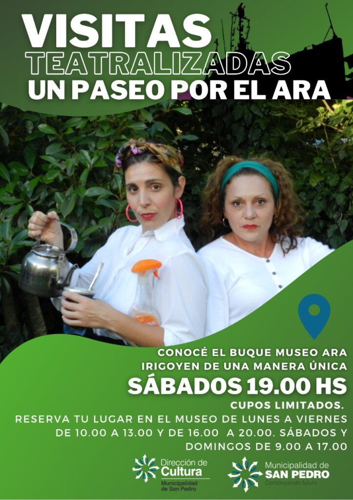 A partir del sábado 30 de enero, comenzaremos con las visitas teatralizadas en el Buque Museo ARA Irigoyen y el Paseo de los Túneles, las mismas serán todos los sábados a las 19 hs y los domingos a las 11 hs, respectivamente.