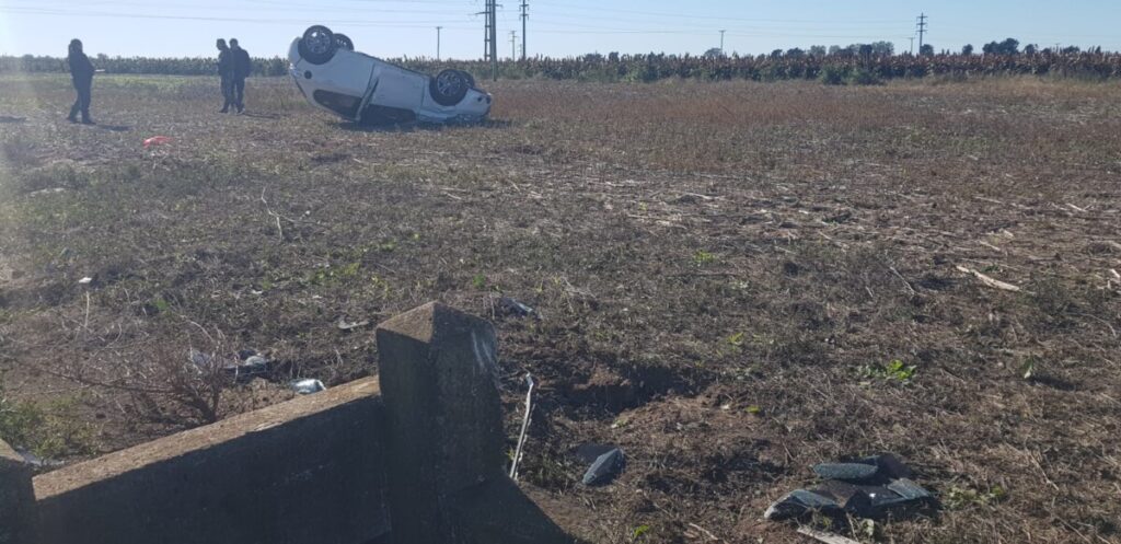 Según informaron fuentes policiales, el vehículo siniestrado es un Peugeot 208 que se dirigía desde Arrecifes hacia San Pedro. Por motivos que se tratan de establecer, el conductor perdió el control del automóvil y terminó despistando y volcando sobre la banquina.
