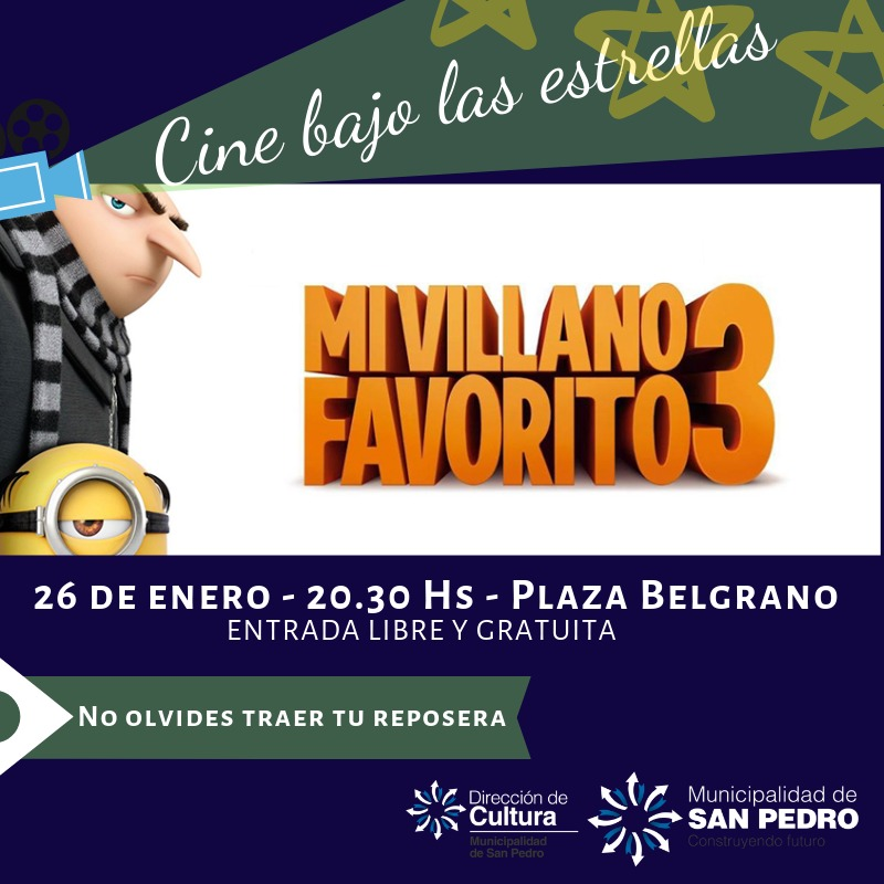 La Dirección de Cultura invita a la edición 2019 del ciclo Cine Bajo las Estrellas con la proyección gratuita de films seleccionados que tendrá lugar en la plaza Belgrano. Las proyecciones se realizarán los sábados de enero 12-19-26 desde las 20:30 hs.