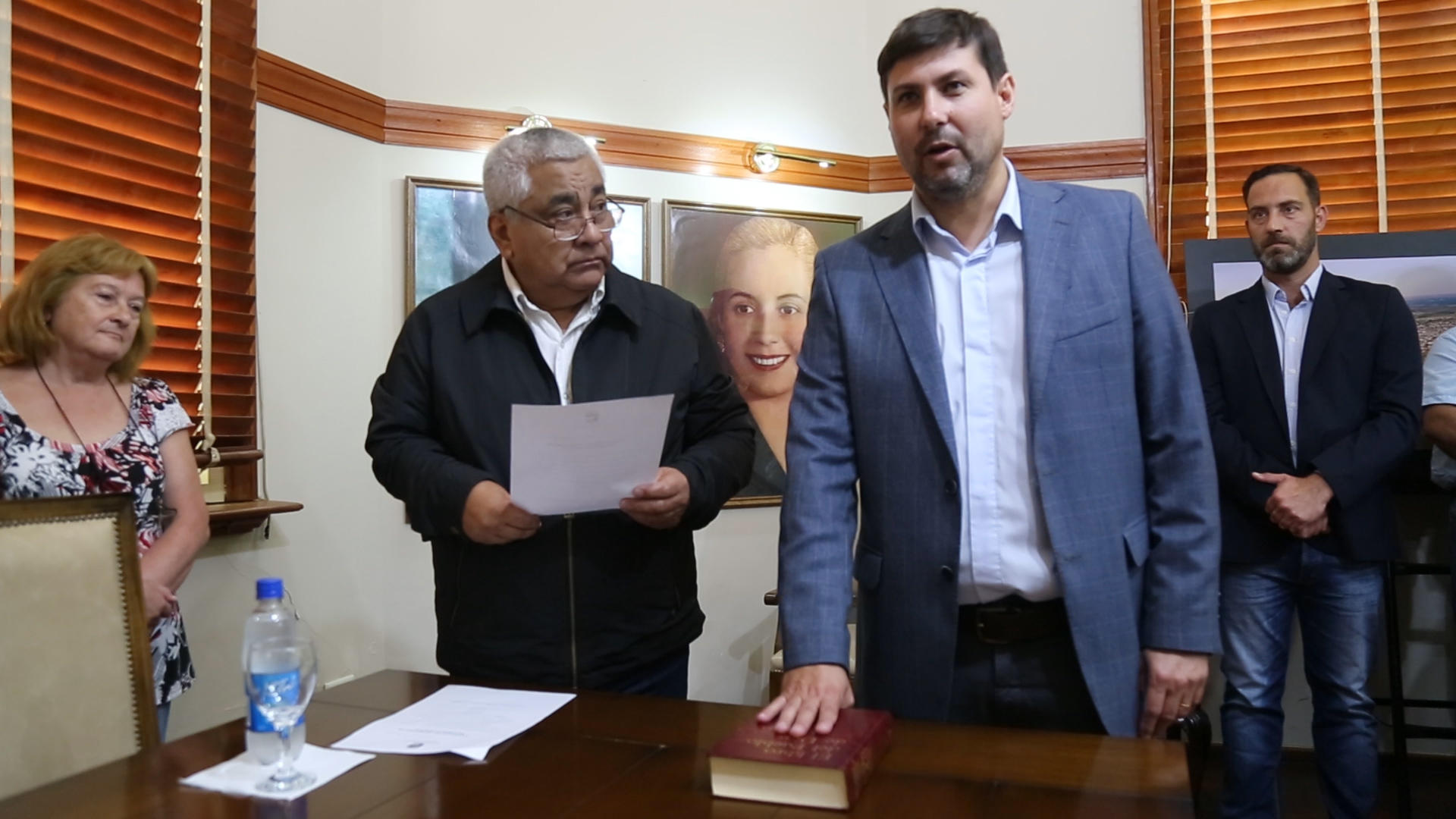En su despacho y junto a miembros del gabinete y del equipo municipal, representantes del HCD y familiares del funcionario, Walter Sánchez juró como Secretario de Desarrollo Humano, área en la que se desempeñó la Lic. Karina Chiarella.