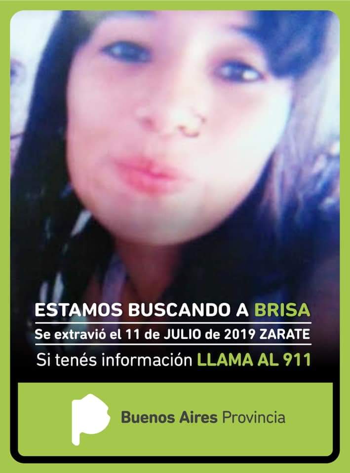Brisa Belén Chiricola tiene 16 años, mide 1,55 es de contextura delgada y actualmente está siendo intensamente buscada por su familia y amigos. Cualquier dato, es de suma importancia.