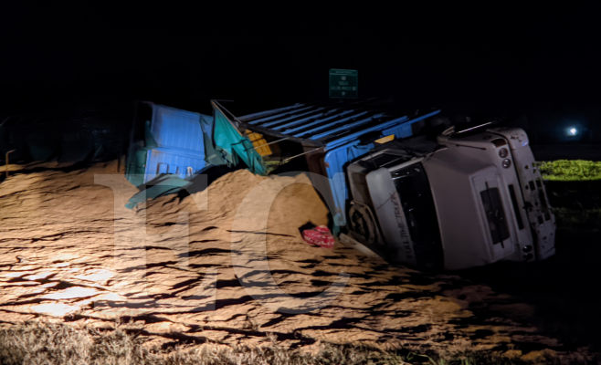 Un joven camionero de 22 años oriundo de Chajarí (Entre Ríos) que transportaba cáscara de arroz volcó esta noche en el km 86 de Ruta N° 9, en cercanías de barrio Los Ceibos de Zárate.